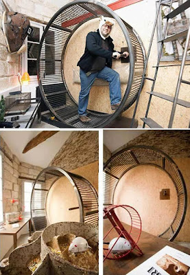 It seems that this French hotel was built for a huge hamster. For 99 euros per night each person can feel what it is like to be a hamster. Hotel guests can even run on the big hamster wheel.